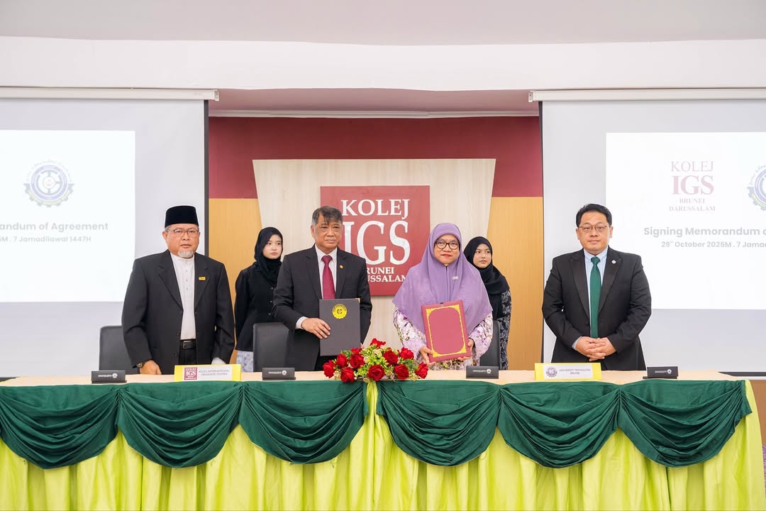 29 October 2025 – Universiti Teknologi Brunei (UTB) and Kolej IGS Sendirian Berhad (Sdn Bhd) have formalised their collaboration through the signing of a Memorandum of Agreement (MoA) held at the Business, Marketing and Communication Centre, First Floor, Kolej International Graduate Studies (KIGS).