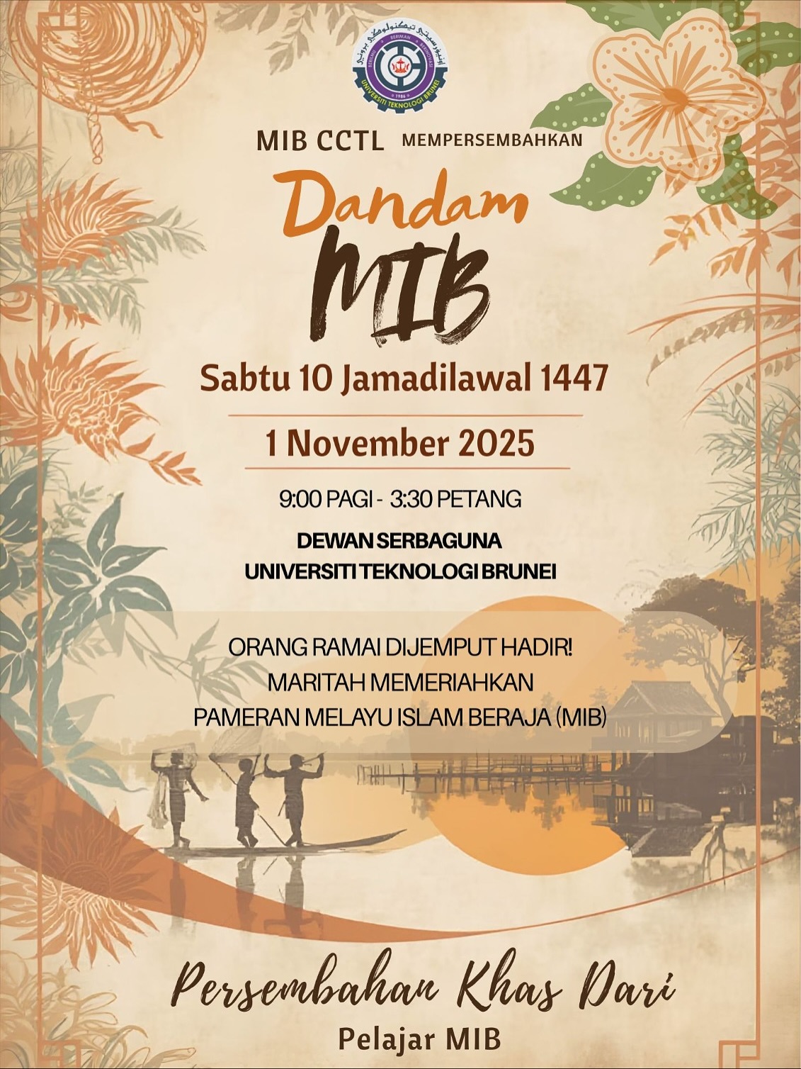 1 November 2025 – Universiti Teknologi Brunei (UTB), through its Centre for Communication, Teaching and Learning (CCTL), organised the Dandam MIB Exhibition to promote understanding and appreciation of the Melayu Islam Beraja (MIB) philosophy as the Bruneian way of life.