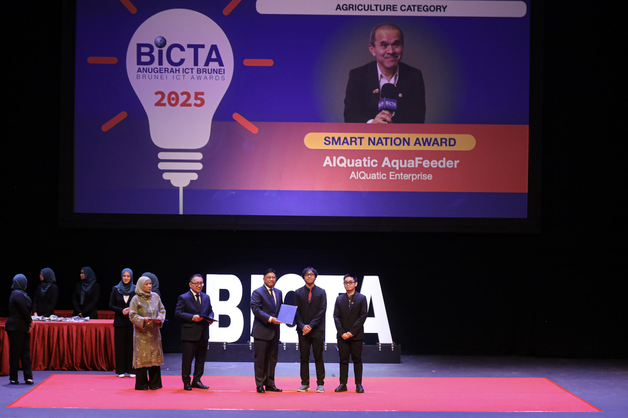 CrAFT’s research team was honored with the Smart Nation Award in the Agriculture Category for their project, AlQuatic AquaFeeder. The Smart Nation Award is a special category within the Brunei ICT Awards (BICTA), established to honour innovative digital initiatives that exemplify the theme of “Smart Nation through Digital Transformation.” This award recognises projects that demonstrate significant potential in enhancing the quality of life, improving public service delivery, and contributing to Brunei Darussalam’s economic development through the strategic use of digital technologies.