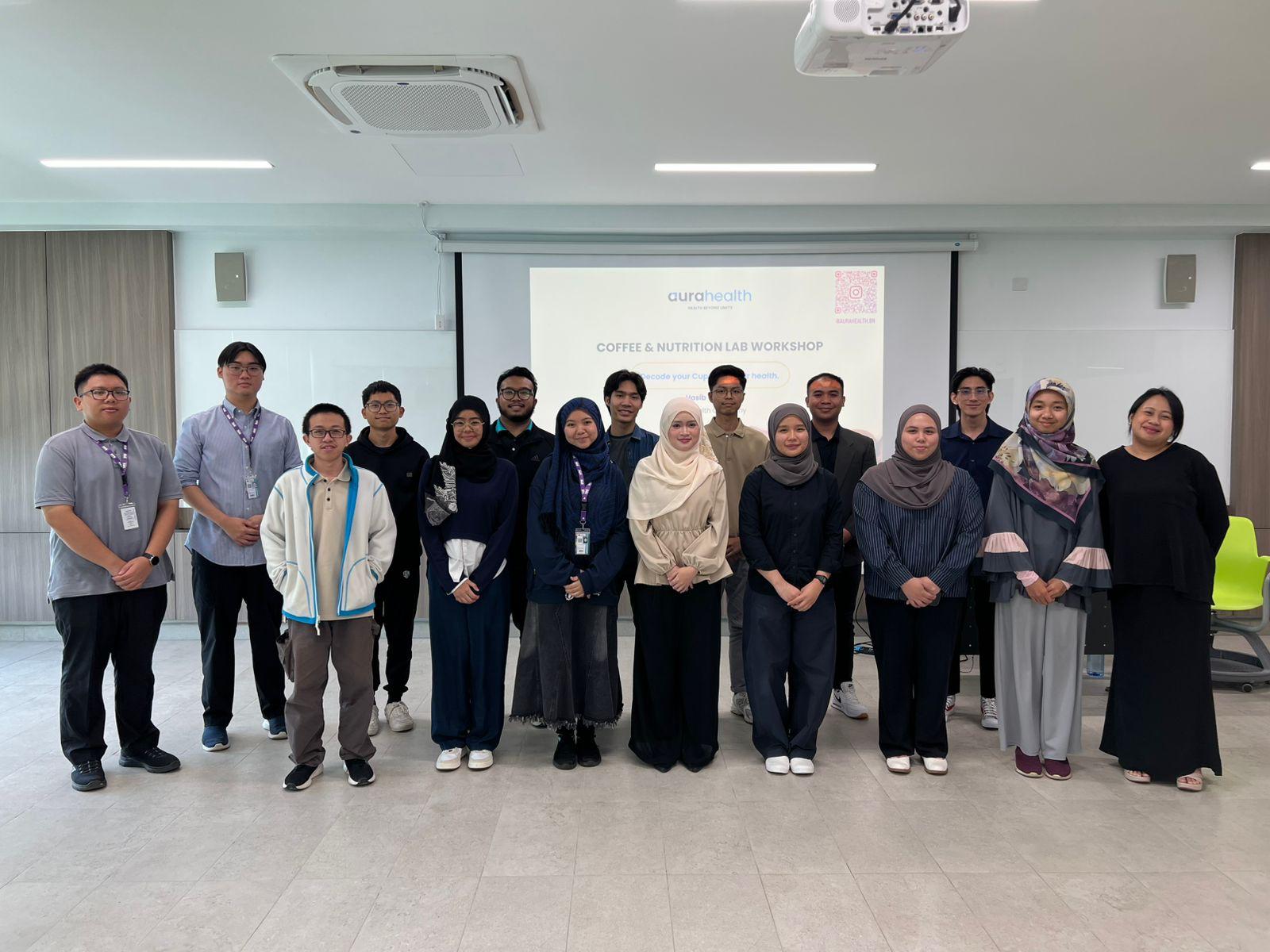 Universiti Teknologi Brunei (UTB) hosted a two-day Coffee & Nutrition Lab Workshop at the School of Applied Science and Mathematics (SASM) building. The workshop was conducted by Aurahealth with the support of SASM and the Centre for Research on Agrifood Science and Technology (CrAFT) with the aim of promoting greater awareness of healthier consumption choices. Through experiential learning and practical demonstrations, participants connected science and nutrition to their everyday food decisions, making the learning experience both interactive and relevant.