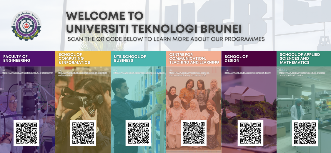 Universiti Teknologi Brunei (UTB) offers a wide range of undergraduate and postgraduate programmes designed to prepare students for real-world challenges. Our academic schools and faculties combine strong theoretical foundations with hands-on, industry-focused learning to ensure graduates are future-ready.