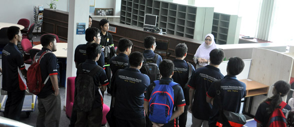 On 26 July 2014, the first group of student intake had an orientation at the new University Library. The Library received groups of the new students in conjunction with this year’s ITB Orientation Programme. The students were briefed on the library’s collections, services, facilities by Dayang Hajah Pusparaini Haji Thani, Senior Librarian and the groups later toured the library.