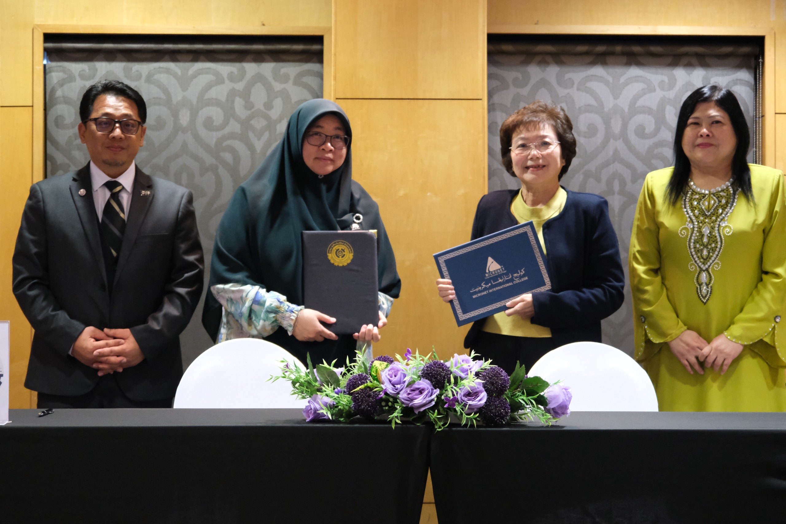 Representing UTB are the Assistance Vice-Chancellor (Academic Affairs) of UTB, Yang Mulia Dr Hajah Ena Kartina binti Haji Abdul Rahman, Witnessed by Registrar and Secretary, Yang Mulia Mr Lim Chui Hua. Whereas,representing Micronet are the Executive Director of Micronet, Yang Mulia Ms Joyce Lim, and witnessed by General Manager of Micronet, Yang Mulia Ms Sharon Chin.