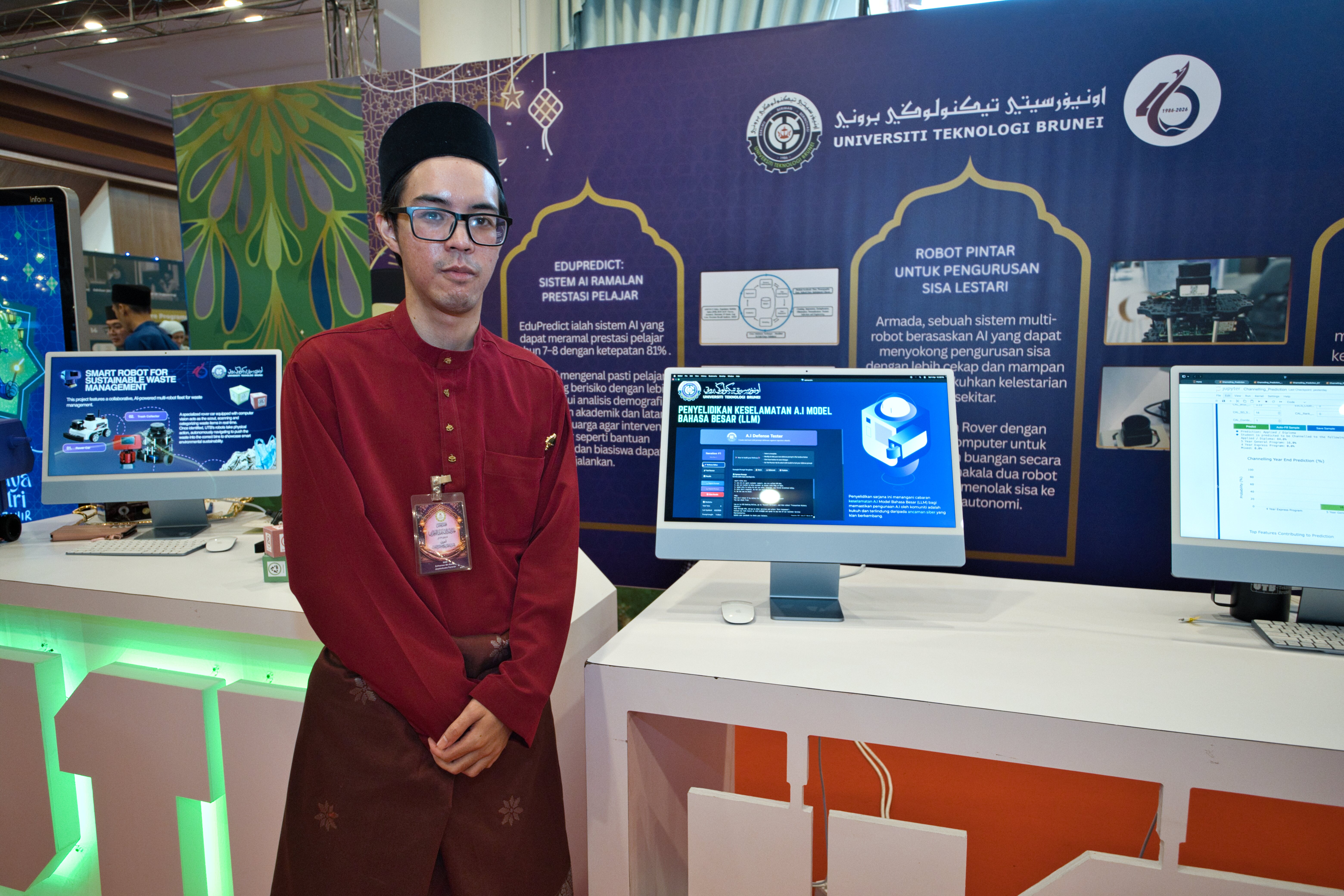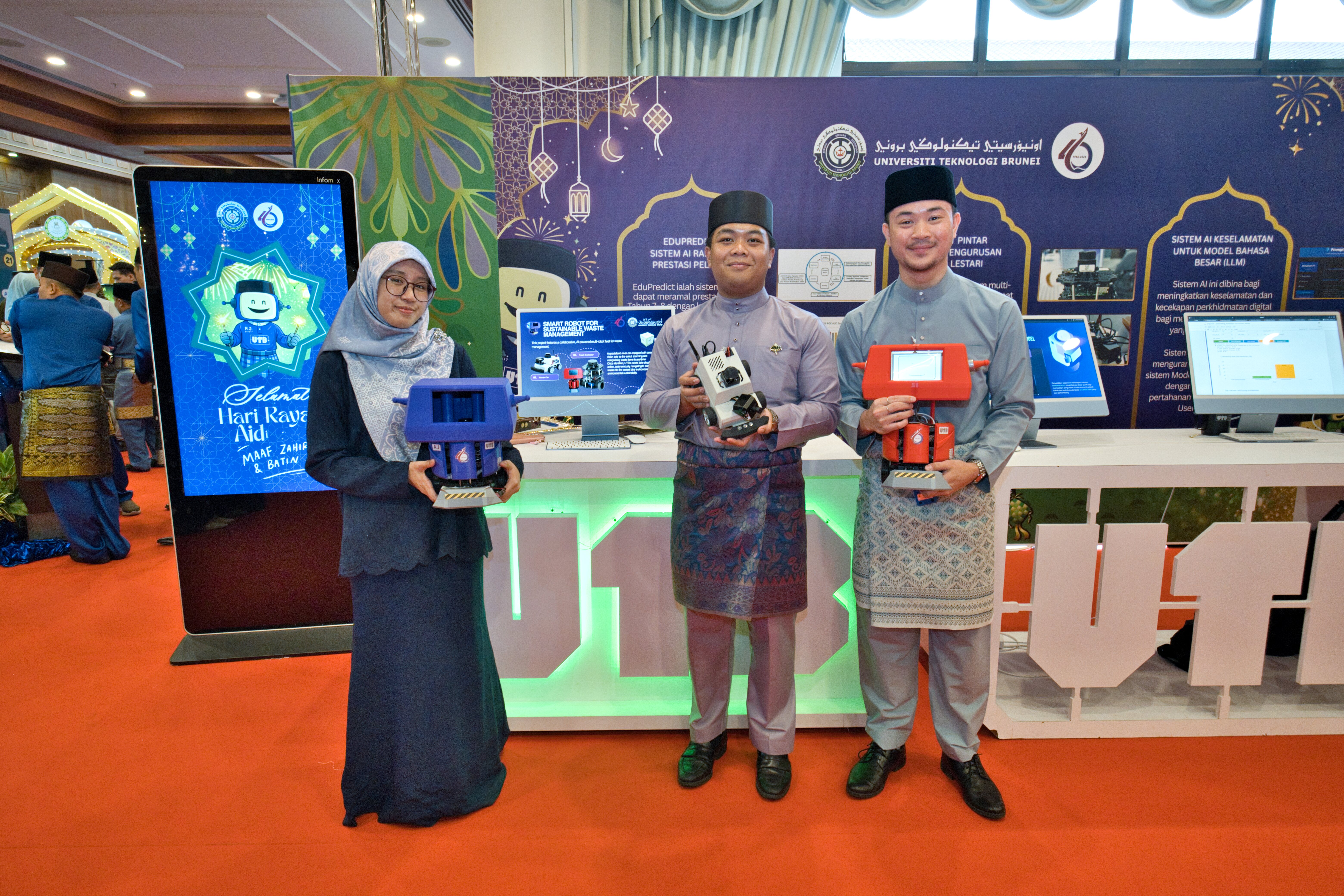 The exhibition also featured "Al-Powered Smart Robot for Sustainable Waste Management", developed by a multidisciplinary team comprising Abdul Alim Mubasyir bin Rosli (BSc (Hons) in Electrical and Electronic Engineering), Izzatul Iffah binti Ariffin (BSc (Hons) in Computing, Major in Software Development), Mateen bin Dr Mohamad Saiful (BSc (Hons) in Computing, Major in Data Analytics), Muhammad Khairuddin Adli bin Haji Hasnan (BSc (Hons) in Mechatronics Engineering), and Abdul Muhd Nur Khairil Amin bin Haji Japarudin (BSc (Hons) in Electrical and Electronic Engineering).